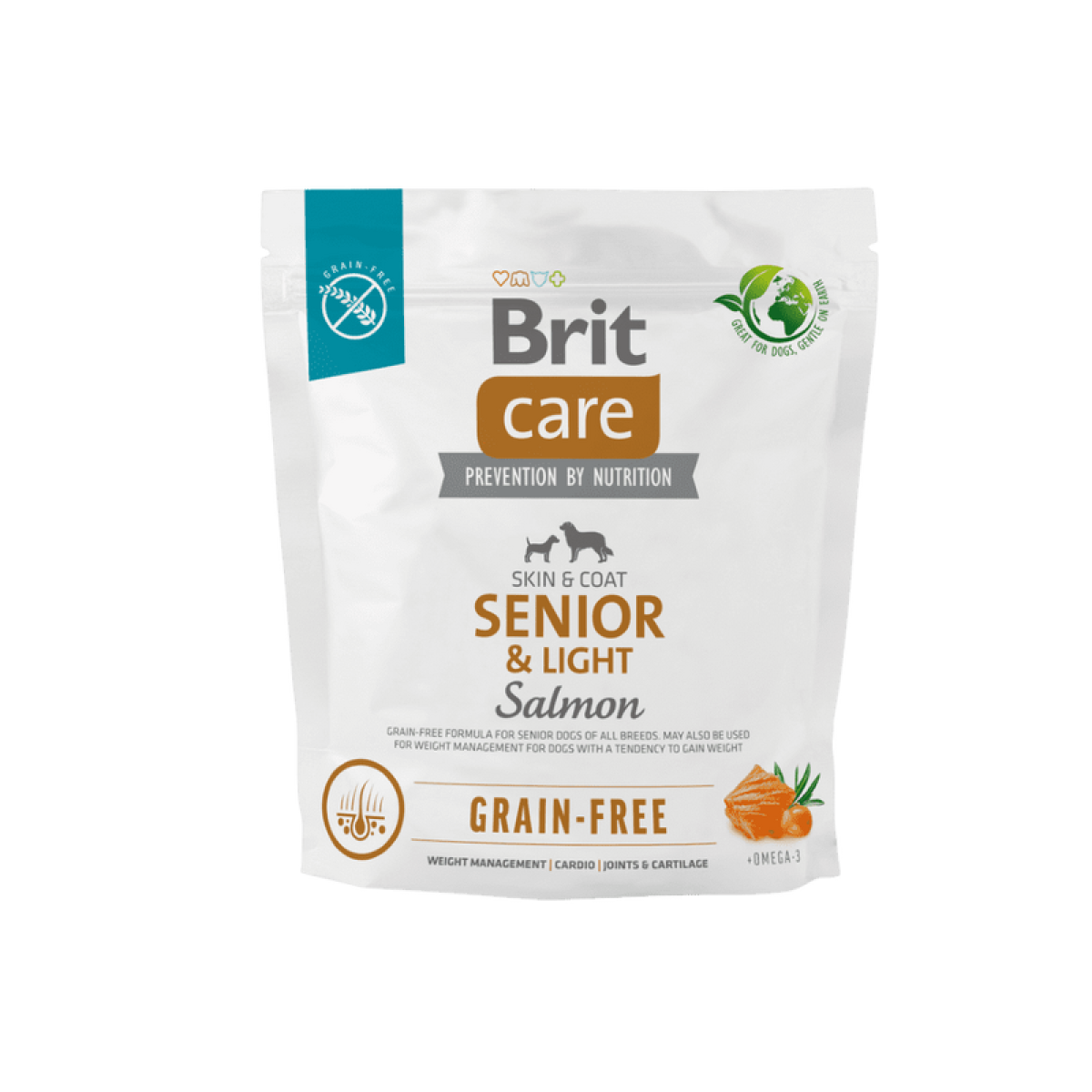- kontrola hmotnosti – bezobilná receptura s vysokým obsahem vlákniny je ideální pro kontrolu hmotnosti stárnoucích psů,