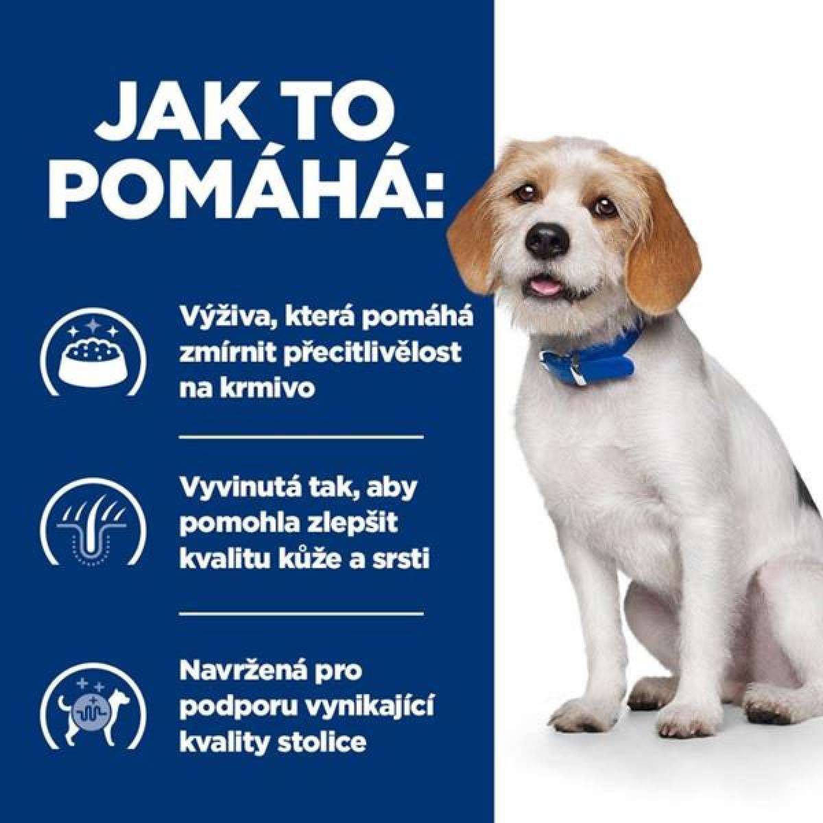 Kompletní dietetické krmivo pro dospělé psy určené k omezení nesnášenlivosti vůči určitým ingrediencím a živinám.