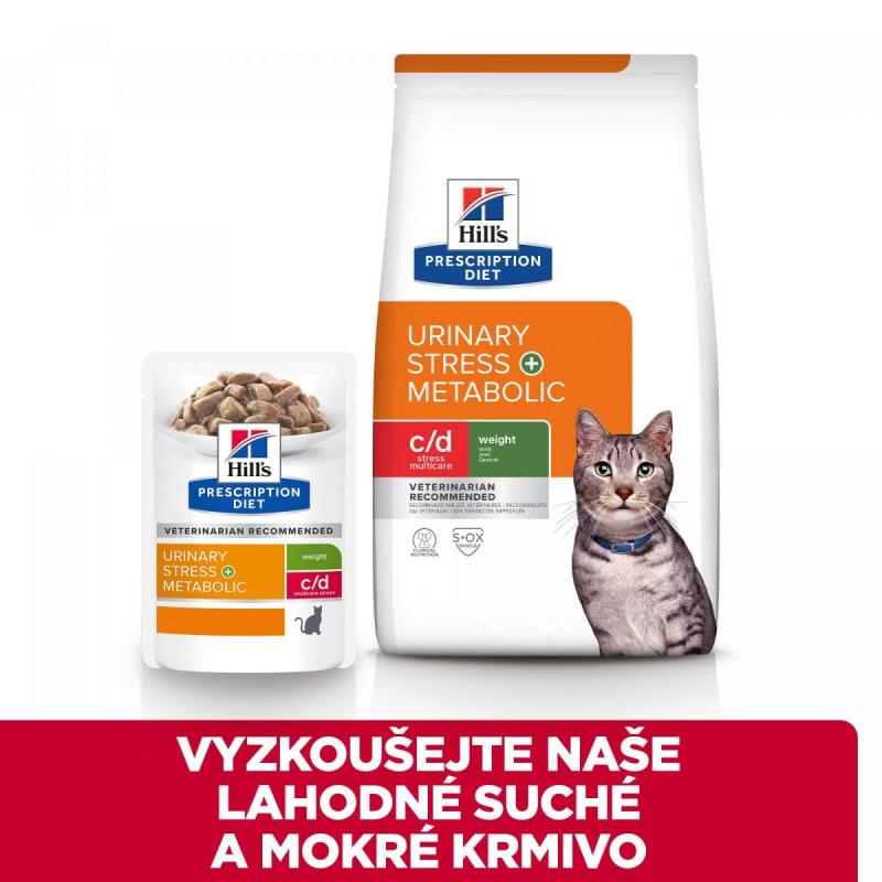 O krok napřed pro jejich spokojený život. Hill's PRESCRIPTION DIET c/d Urinary Stress + Metabolic kočičí krmivo s kuřetem bylo sestaveno na základě vědeckých poznatků, aby pomáhalo omezit stres a regulovat váhu. Stres a obezita představují u koček běžné příčiny močových problémů, včetně onemocnění dolního močového ústrojí koček (FLUTD).