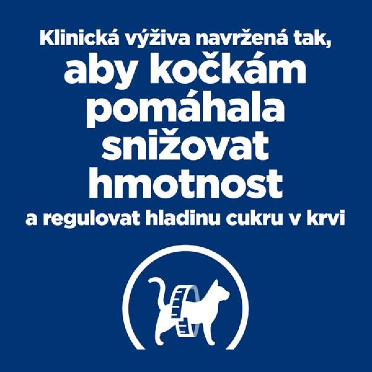 Klinicky ověřená výživa se složením, které přispívá ke snížení hmotnosti u koček a reguluje hladinu cukru v krvi.