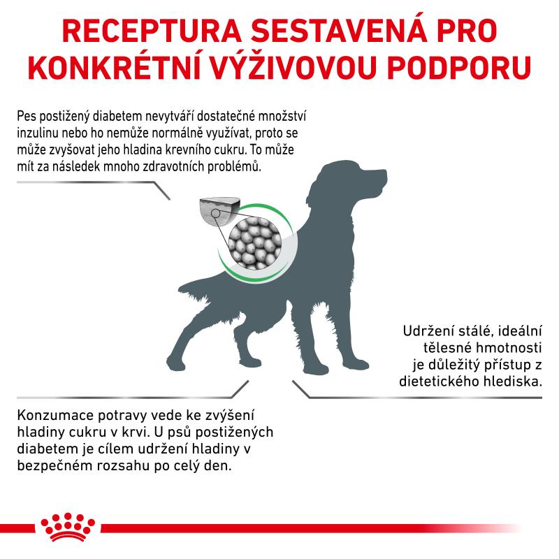 Speciální veterinární dieta pro dospělé psy trpící diabetem.